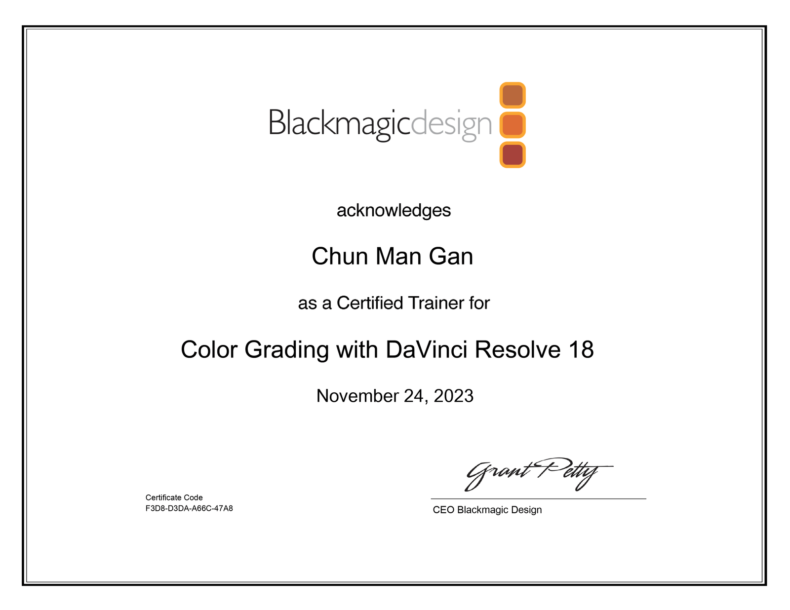 Coming from a different industry, I’m truly grateful to be a Certified Trainer for Intro, Edit & Colour by Blackmagic Design after passing their extensive program and examination. In our community of trainers, we are empowered to teach the ways around DaVinci Resolve to our students…
